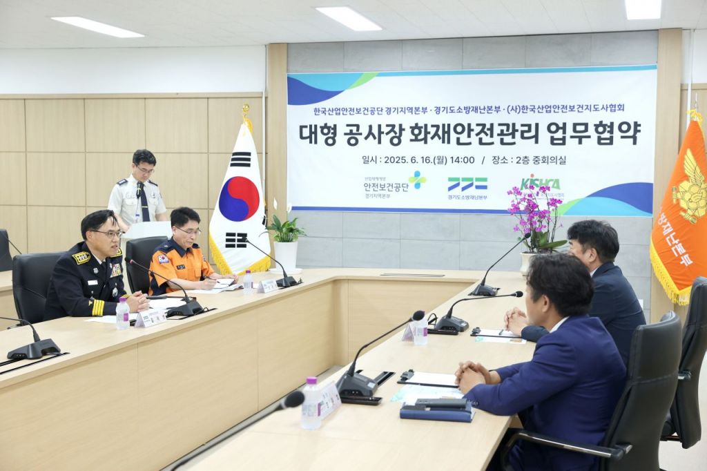 경기도소방재난본부가 16일 한국산업안전보건공단 경기지역본부, 한국산업안전보건지도사협회와 '대형 공사장 화재안전관리 강화를 위한 업무협약'을 체결했다.