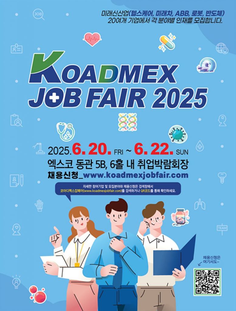 케이메디허브(대구경북첨단의료산업진흥재단, 이사장 박구선)가 20일부터 22일까지 3일간 대구 엑스코에서 취업박람회 'KOADMEX 잡페어 2025'(이하 '잡페어')를 개최한다.