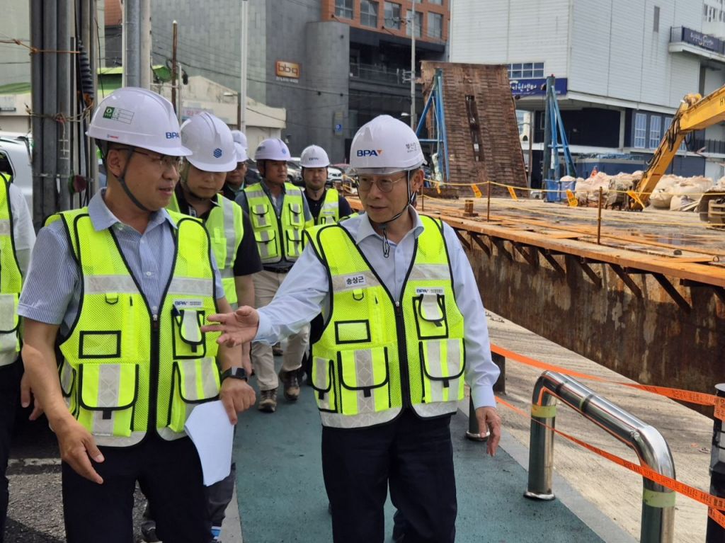 영도 호안 보강공사 현장을 점검하는 BPA 송상근 사장. BPA 제공
