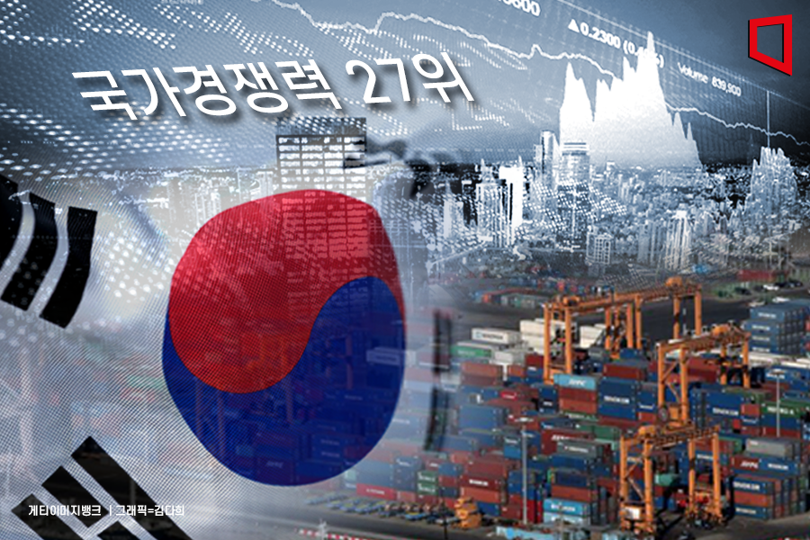 스위스 국제경영개발대학원(IMD)이 17일 발표한 '2025년 국가경쟁력 평가'에서 한국은 평가대상 69개국 가운데 27위를 기록했다. 지난해 20위에서 7계단 내려앉은 수치다. 특히 기업 효율성은 전년 23위에서 44위로 21계단이나 떨어졌다.