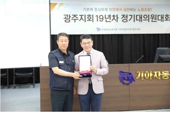 광주시 서구의회 김태진 의원이 지난 16일 민주노총 전국금속노동조합 기아차지부 광주지회(지회장 은용철)로부터 공로상을 받았다.