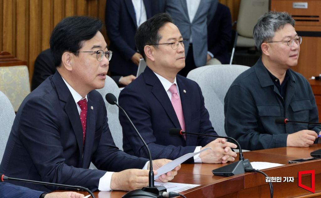 송언석 국민의힘 원내대표가 17일 국회에서 열린 원내대책회의에서 발언하고 있다.