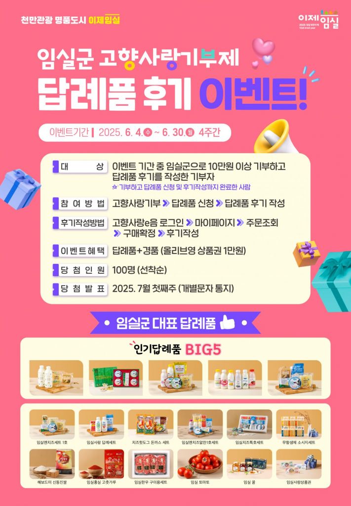 임실구 고향사랑기부제 답례품 후기 이벤트 포스터. 임실군 제공