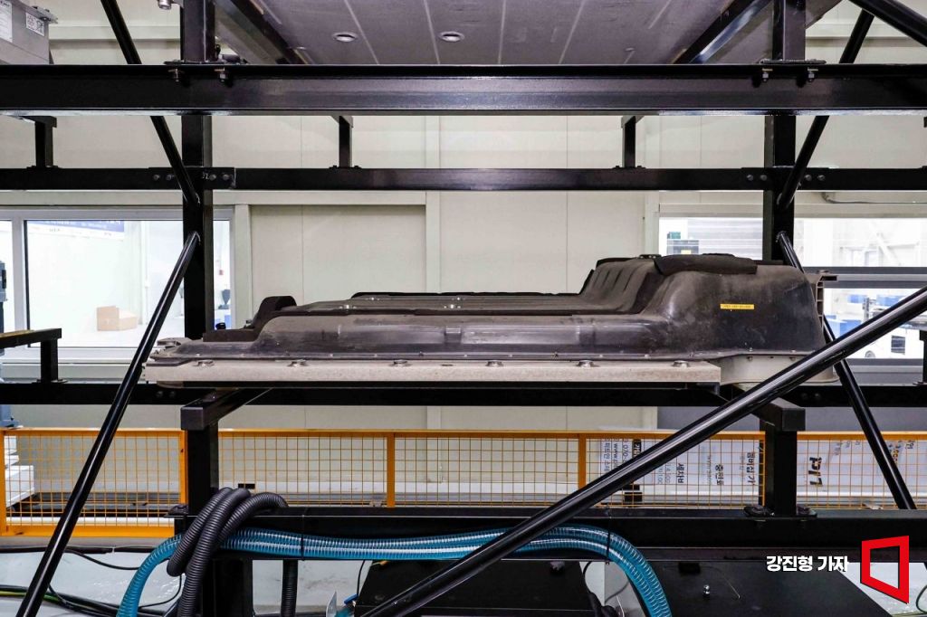 특수 제작한 리프트에 차량이 올려지자 엔지니어 2명이 능숙하게 하부에 있는 배터리팩의 볼트를 풀기 시작했다. 그 사이 로봇 1대가 정해진 루트를 따라오더니 차량 아래에서 해체된 배터리팩을 받아 바로 옆에 마련된 충전 랙으로 이동했다. 이때 또 다른 로봇이 충전 랙에서 충전이 완료된 배터리팩을 들고 아이오닉5 밑으로 이동했다. 로봇이 배터리팩을 정해진 위치까지 들어 올리자 작업자들은 다시 배터리팩을 신속하게 차량에 연결하기 시작했다.