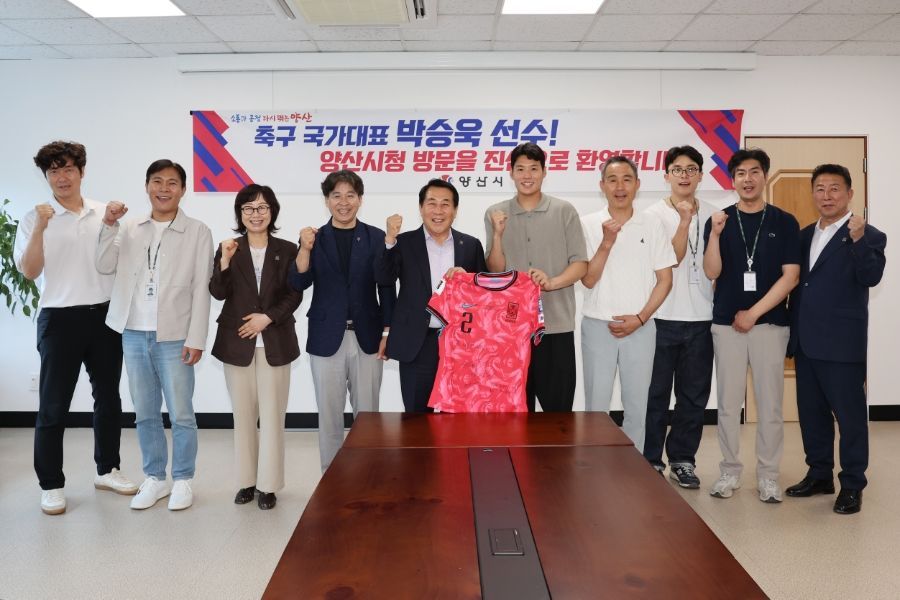 나동연 시장은 양산시 방문을 환영하면서, 6월 10일 쿠웨이트전을 승리로 2026년 북중미 월드컵 예선을 무패로 장식한 것에 대한 축하, 그리고 곧 있을 전역(6월 17일)을 앞두고 군복무를 무사히 마치게 된 것에 대한 격려의 인사를 전했다.