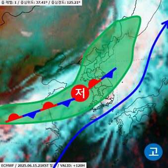 중부지방과 전북은 정체전선을 동반한 채 서쪽에서 다가오는 저기압 앞쪽에 형성된 온난전선의 영향으로 19일 늦은 오후에서 밤사이에 비가 내리기 시작하겠다. 20일부터 21일까지 정체전선 영향으로 전국에 비가 쏟아질 전망이다.