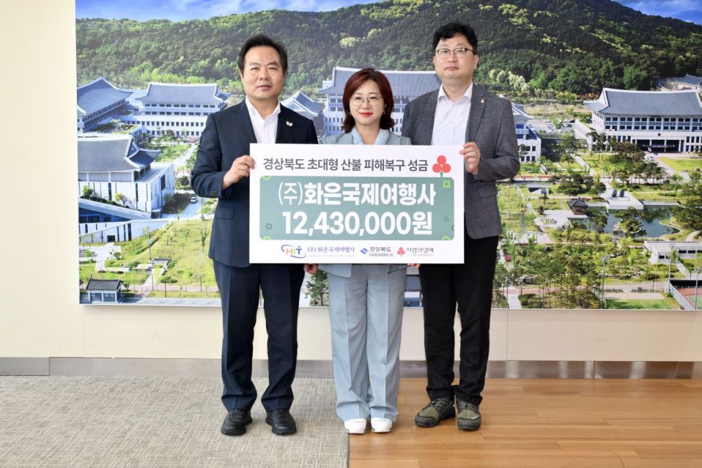 경북문화관광공사(사장 김남일)는 17일 경북도 국외전담여행사 중 한 곳인 화은국제여행사(대표 이지언)가 지난 3월 경북 지역에서 발생한 산불 피해 복구를 위해 경북사회복지공동모금회에 성금 1243만원을 전달했다고 밝혔다.