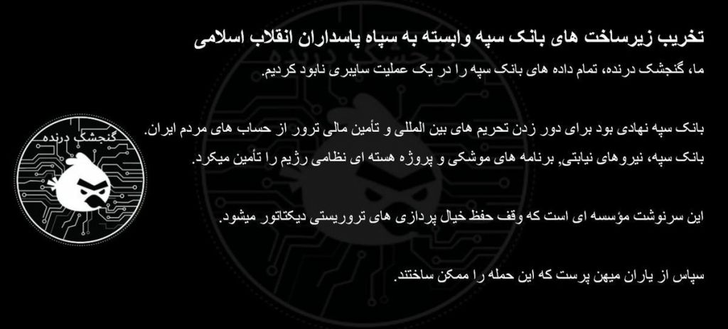 해커조직 곤제슈케다란데는 엑스(X·옛 트위터)를 통해 "이란 이슬람혁명수비대(IRGC)의 세파은행 데이터를 파괴하는 사이버공격을 가했다"고 밝혔다.