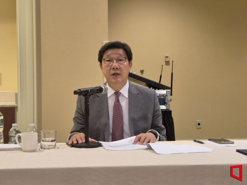 노연홍 한국제약바이오협회 회장이 17일(현지시간) 미국 보스턴에서 열리고 있는 '2025 바이오 인터내셔널 컨벤션(바이오USA)'에서 간담회를 갖고 취재진 질의에 답변을 하고 있다. 최태원 기자