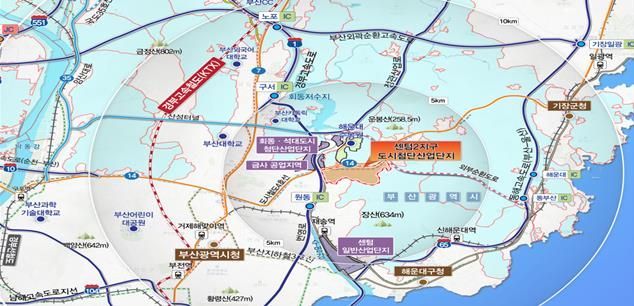 센텀2지구 도시첨단산업단지 위치도 및 토지이용계획도.