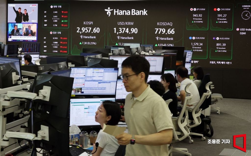 코스피가 3000을 앞두고 중동사태가 고조되면서 등락을 거듭하고 있는 가운데 18일 서울 중구 하나은행 딜링룸 현황판에 코스피 지수, 원/달러 환율이 표시되고 있다.