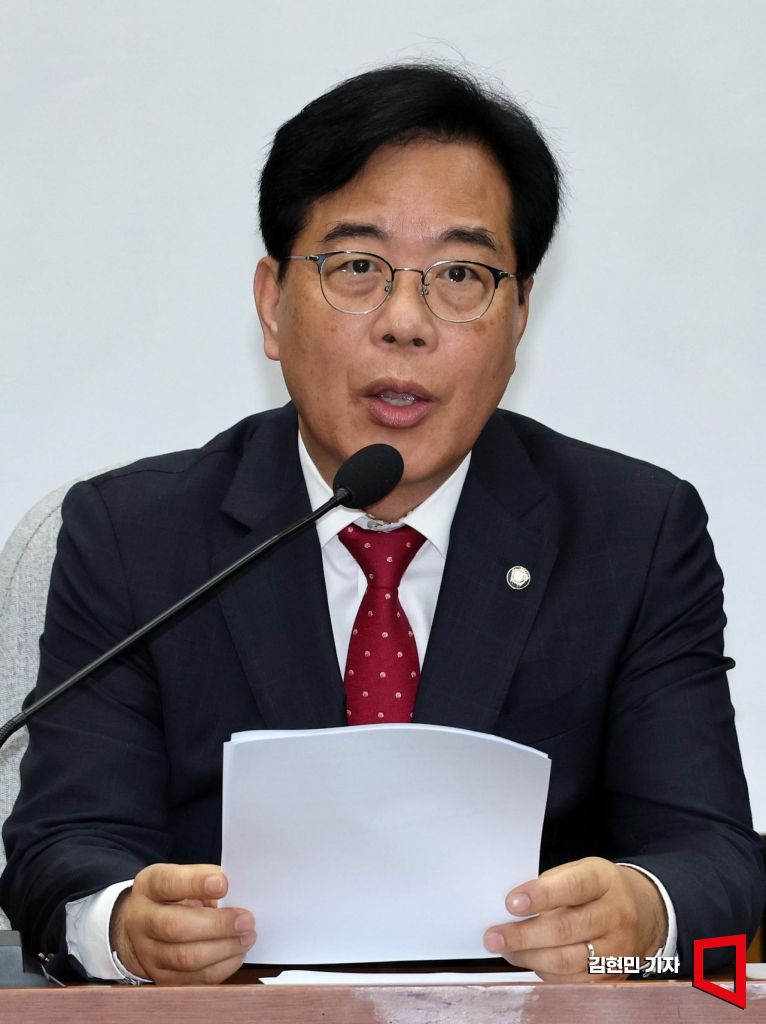 송언석 국민의힘 원내대표가 17일 국회에서 열린 원내대책회의에서 발언하고 있다. 2025.6.17 김현민 기자