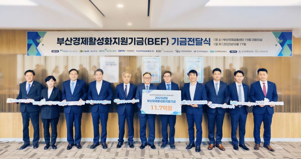 부산항만공사(BPA, 사장 송상근)가 지난 17일 부산국제금융센터(BIFC)에서 부산지역 8개 기관과 함께 '부산경제활성화지원기금(BEF)' 전달식을 열고 총 11억7000만원을 수탁기관에 전달했다.