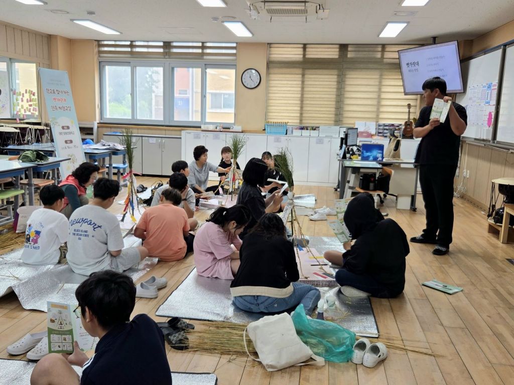 체험 교실은 볏가릿대 민속을 소개하는 강의와 학생들이 직접 볏짚으로 새끼줄을 꼬아 대나무·오곡 등을 이용해서 볏가릿대 모형 및 달걀 꾸러미 등을 만드는 내용으로 구성됐다.