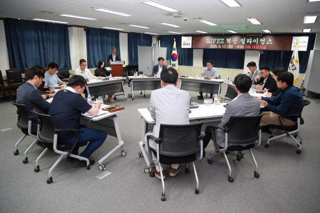 경자청은 지난 17일 본청 대회의실에서 '제1회 BJFEZ 혁신 얼라이언스'를 열고 핵심 산업 육성을 위한 첫걸음을 뗐다. 회의에 박성호 청장을 비롯해 부산·경남테크노파크, 한국해양수산개발원, 한국자동차연구원, 지역 대학 전문가 등 15명이 참석했다.