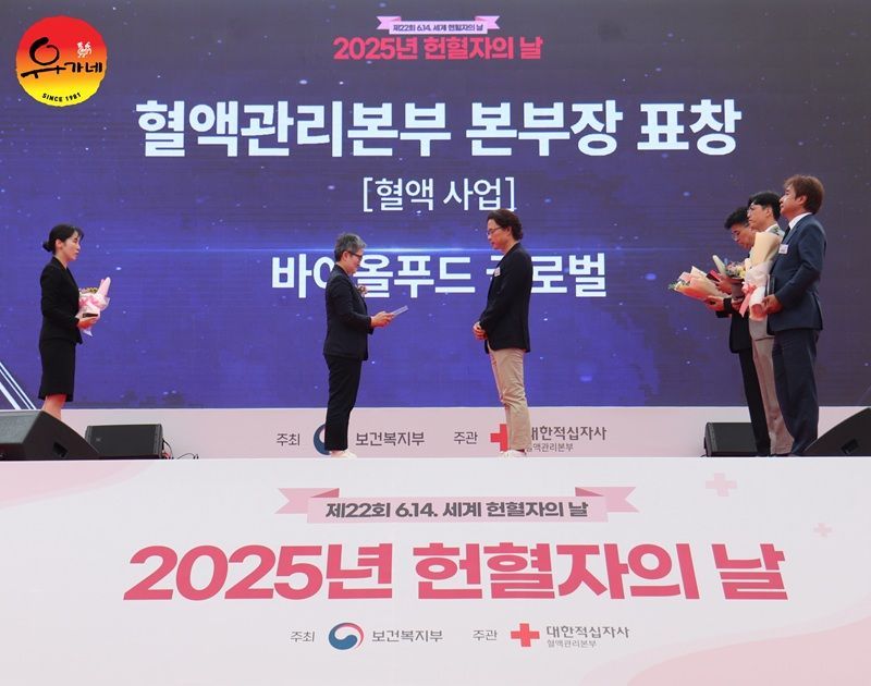 ㈜바이올푸드글로벌(대표 권지훈)이 운영하는 대한민국 대표 닭갈비 프랜차이즈 '유가네'가 지난 13일 광화문 광장에서 열린 '2025년 헌혈자의 날' 행사에서 대한적십자사로부터 혈액 사업 유공 표창을 수상했다.