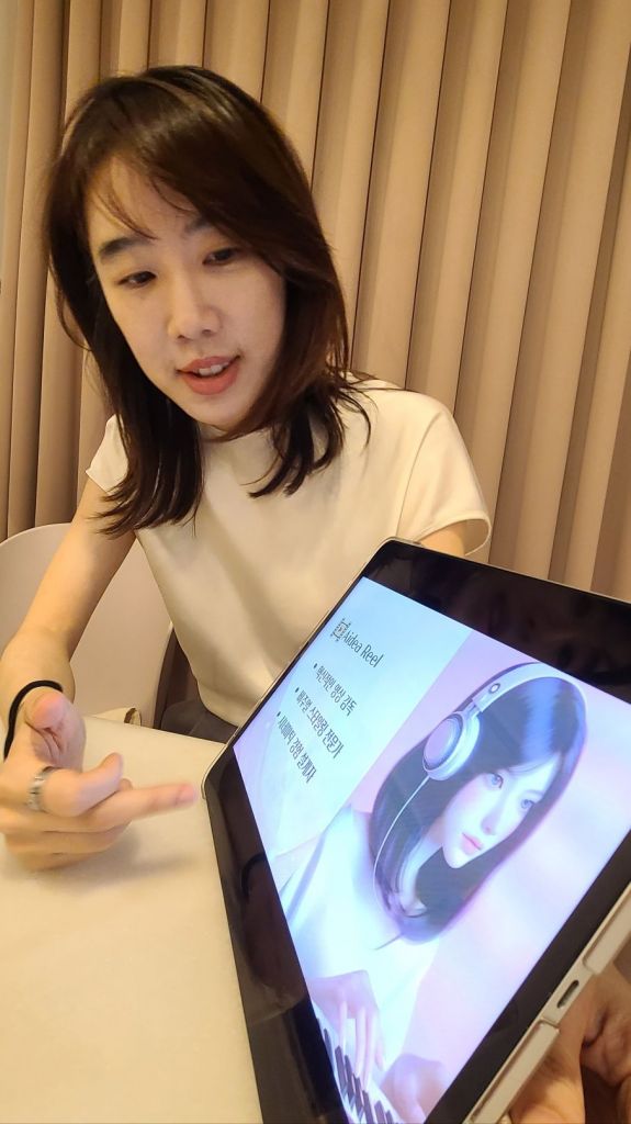 '라이팅톤'은 작가 보조역할을 맡았다. 문장 전개와 글쓰기의 달인으로 성장하고 있다고 김 대표가 소개했다. 수노아리아는 사운드 디자이너이다.