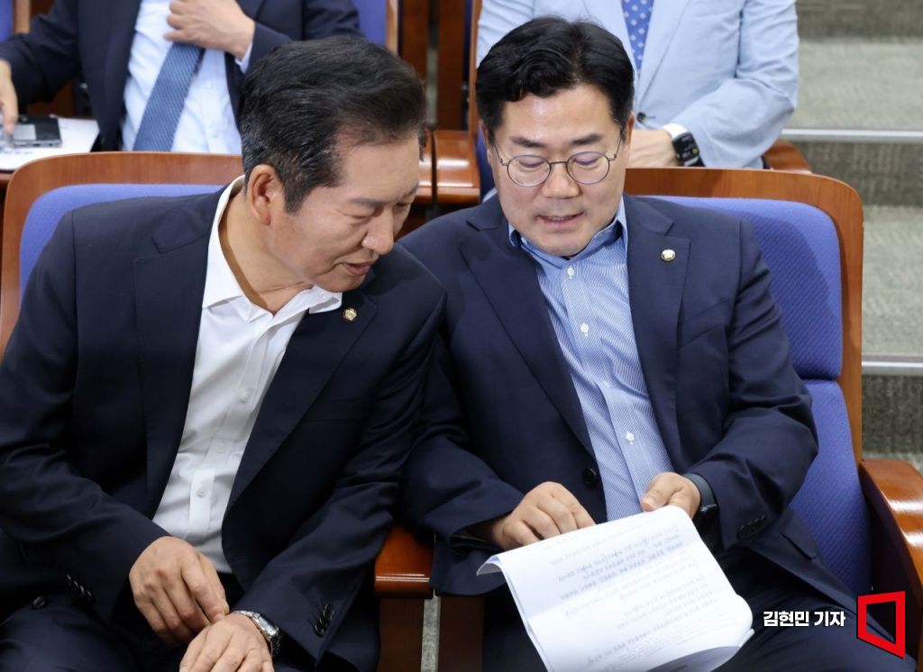 민주당은 오는 8월 2일 전당대회를 열고 차기 당 대표를 선출한다. 이번 전당대회는 전임 당 대표였던 이 대통령이 지난 4월 대선 출마를 위해 사퇴하며 치러지는 보궐선거다. 김민석 국무총리 후보자의 사퇴로 공석이 된 최고위원 자리도 함께 뽑는다. 이번에 선출하는 당 대표와 최고위원의 임기는 내년 8월까지다. 정 의원은 전당대회 일정이 확정되기도 전 이미 당 대표 출마를 선언했다. 박 전 원내대표도 조만간 출사표를 던질 것으로 보인다.
