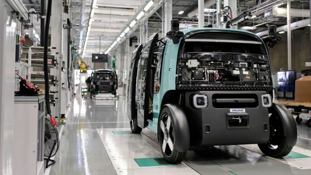 아마존 죽스 로보택시가 18일(현지시간) 22만제곱피트(약 2만438㎡) 넓이의 캘리포니아 생산시설에서 조립되고 있다. AP연합뉴스