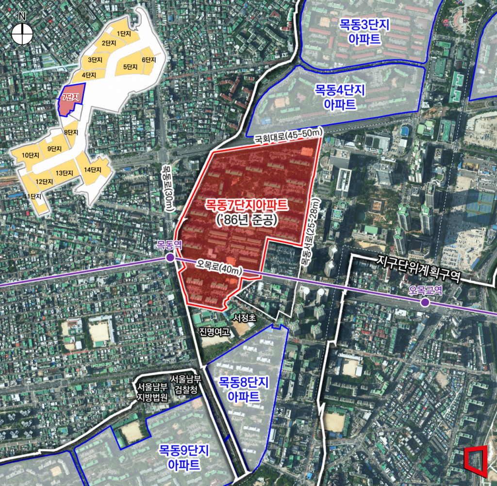 목동 재건축 단지 중 최대 규모인 7단지는 재건축을 통해 최고 49층, 4335가구(임대 426가구 포함)로 탈바꿈한다. 7단지는 1986년 준공된 15층 높이의 34개동, 전용 59~101㎡ 2550가구로 구성돼있다.
