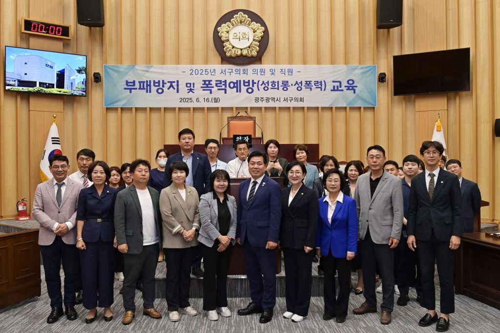 광주시 서구의회(의장 전승일)가 지난 16일 서구의회 2층 본회의장에서 의원과 의회사무국 직원을 대상으로 2025년 부패방지 및 폭력예방교육을 실시했다.