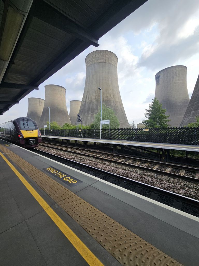 영국 노팅엄셔의 이스트 미들랜즈 파크웨이 역 승강장에서 보이는 랫클리프 온 소어 발전소의 모습. 전진영 기자.