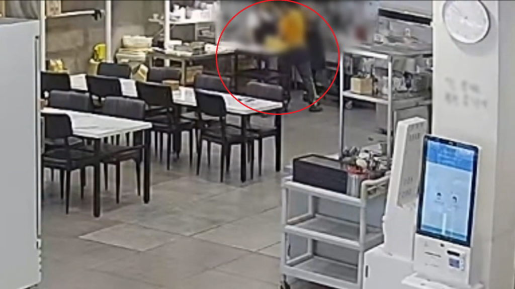 경남 진주시 상대동의 한 식당에서 술에 취한 남성이 종업원을 폭행하고 있다. 경남경찰청 제공 영상 갈무리