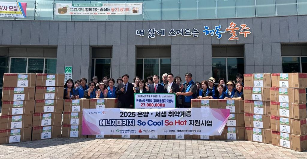 새울원자력본부(본부장 소유섭)는 19일 울주군 온양읍행정복지센터에서 온양읍지역사회보장협의체(공동위원장 서천천·최성기), 서생면지역사회보장협의체(공동위원장 김혁관·김형수), 울산공동모금회(회장 전영도)와 에너지 빈곤층 제로화를 위한 '소쿨소핫(so cool so hot)' 고효율 에너지 물품 전달식을 가졌다.