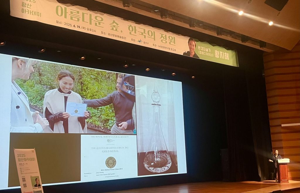 세계 3대 원예 박람회인 영국 첼시 플라워 쇼에서 금메달과 최고상(회장상)을 동시에 받은 정원 디자이너 황지해 작가가 19일 오후 광주 광산문화예술회관에서 열린 '광산 아카데미' 강연 무대에 섰다. '아름다운 숲, 한국의 정원'을 주제로 열린 이 날 특강은 정원 예술의 사회적 책임과 한국 식물의 철학적 가치, 그리고 황 작가의 작업 세계를 공유하는 자리였다.