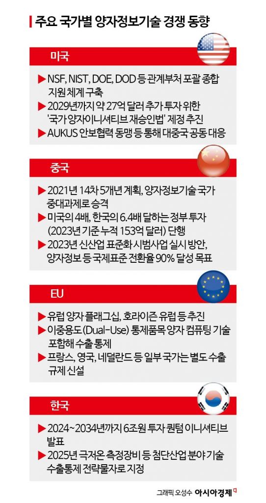 미국과 중국, 유럽연합(EU) 등 주요 기술 강국들은 10여년 전부터 국가 차원에서 양자정보기술 관련 정책을 수립하고, 대규모 예산을 투입하면서 자국 기술 보호를 위한 국가전략기술 지정 및 수출통제도 확대하고 있다. 핵심 동맹국과의 교류만 허용하는 등 미국과 중국을 중심으로 한 편 가르기 현상도 뚜렷하다.