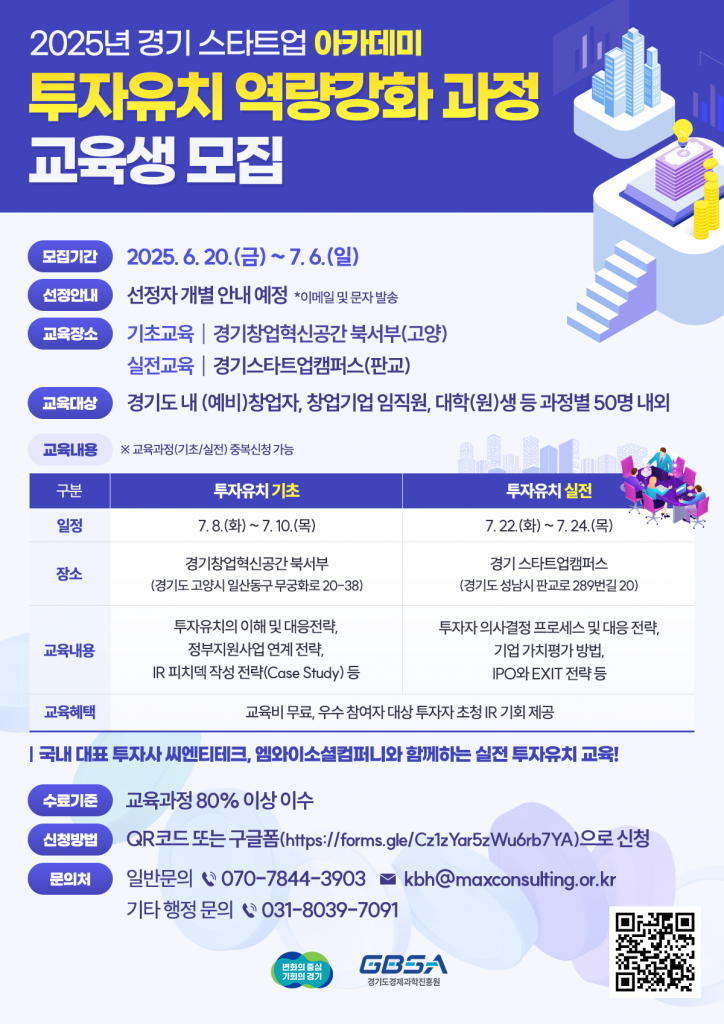 경기도경제과학진흥원의 '경기스타트업아카데미 투자유치 역량강화 과정 교육생' 모집 포스터