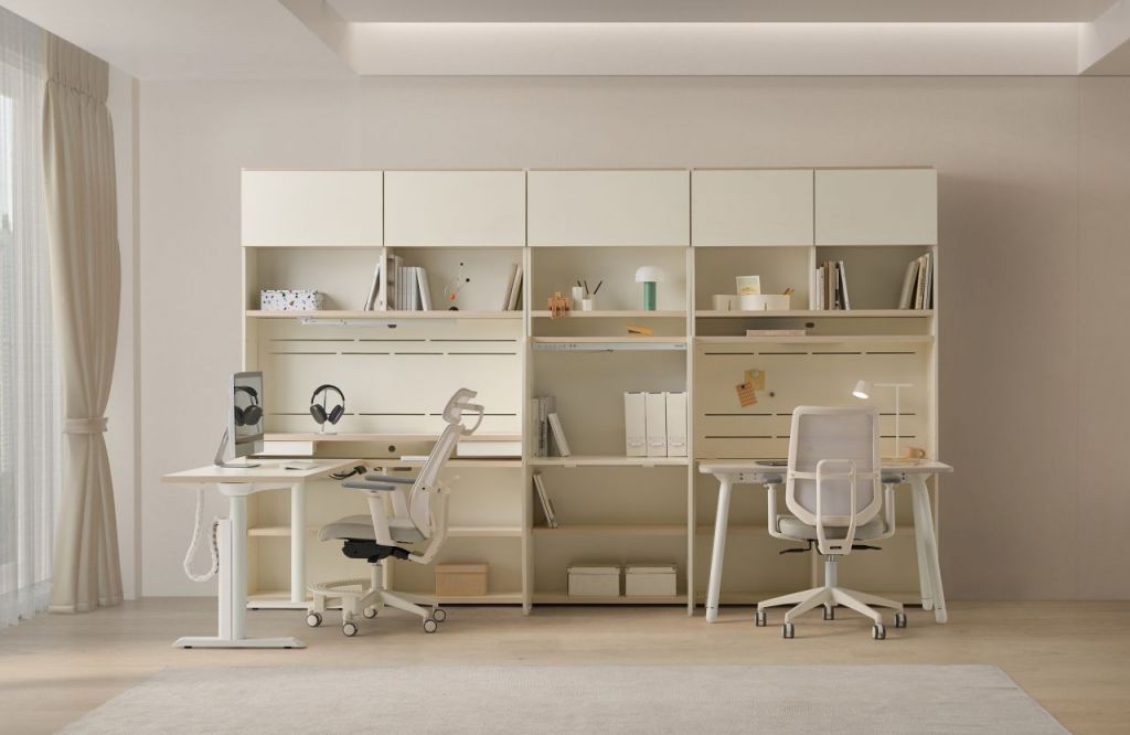 공간 활용도도 높였다. 넉넉한 하부장과 상부 선반은 수납과 정리에 유용하며, 전선 정리 홀이 마련돼 배선 관리도 가능하다. 인출식 및 회전식 서랍, 철제 뒤판, 3단계 높이 조절이 가능한 선반 등 다양한 액세서리와도 조합할 수 있다.