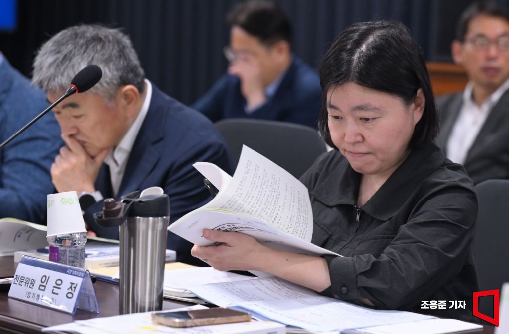 국정기획위원회 정치행정분과 전문위원을 맡은 임은정 대전지검 부장검사가 20일 오전 서울 종로구 정부서울청사 창성동 별관에서 열린 검찰청 업무보고에서 자료를 살피고 있다.