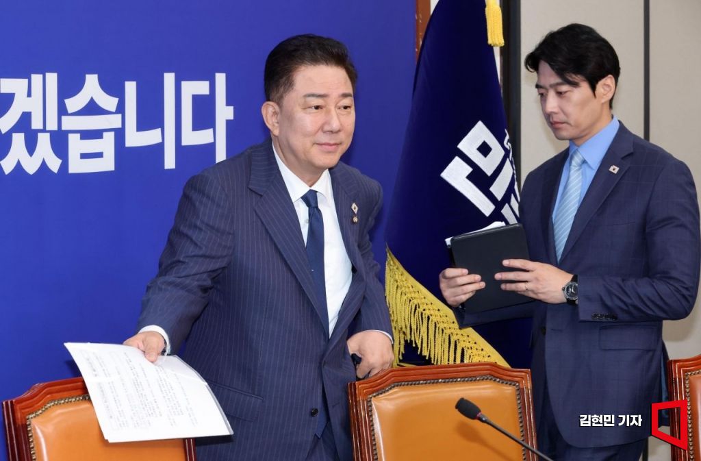김병기 더불어민주당 당대표 직무대행 겸 원내대표가 20일 국회에서 열린 최고위원회의에 참석하고 있다.