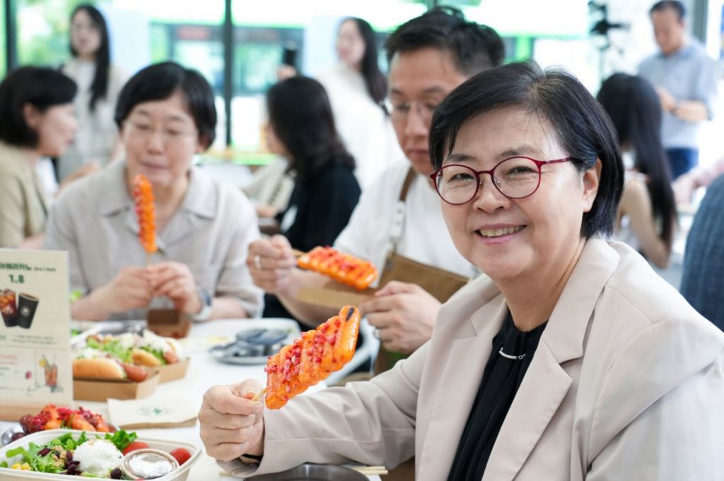 이순희 강북구청장이 ‘Food Cafe 길가온’의 음식을 시식하고 있다. 강북구 제공.