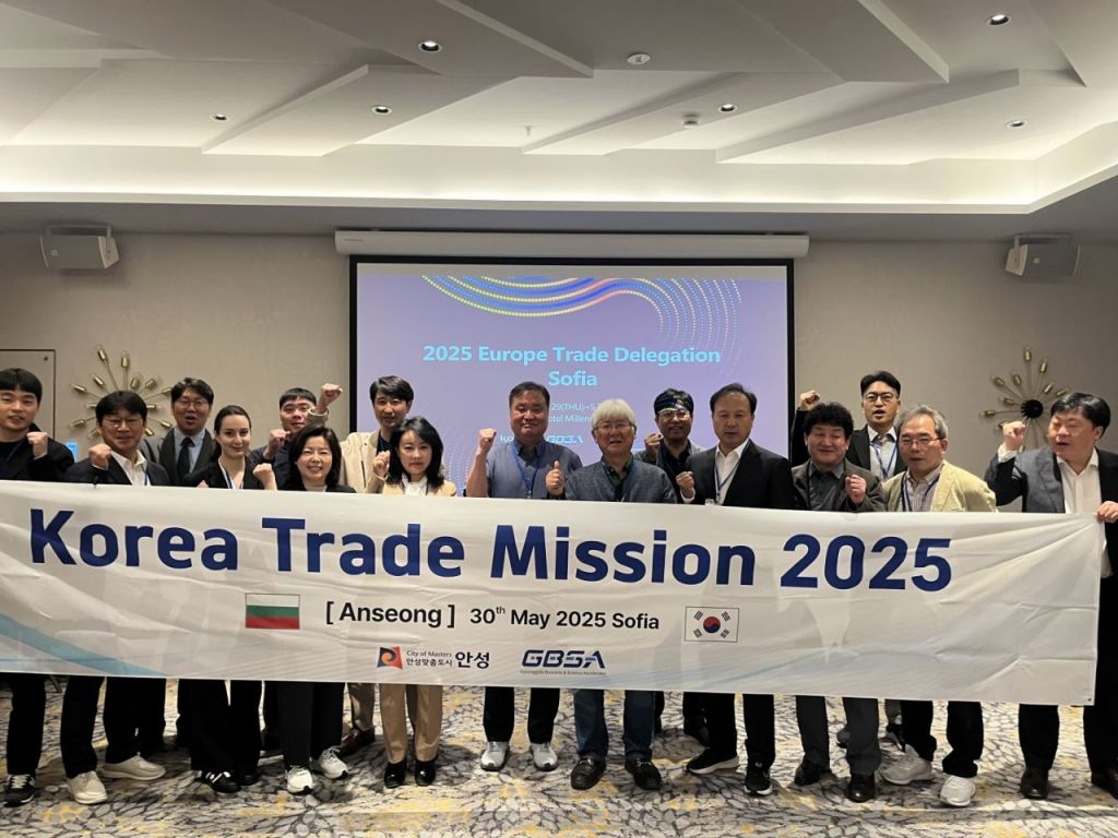 안성시 동유럽 시장개척단 참가기업 관계자들이 불가리아 소피아에서 열린 수출상담회에서 성공적인 시장 개척을 다짐하고 있다. 안성시 제공