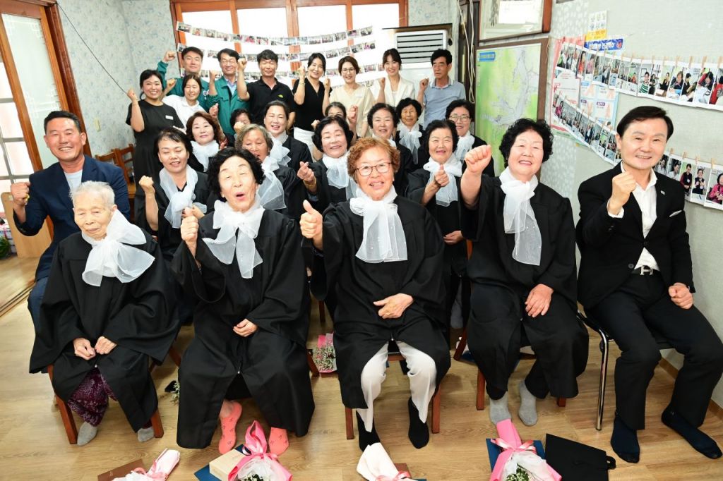 경북 고령군 다산면 벌지2리 마을회관에서 지난 19일 이색적인 졸업식이 열렸다. 학사모를 쓴 어르신들이 졸업장을 받고 자작시 액자를 전달받으며 눈물과 웃음이 교차하는 특별한 시간이 펼쳐졌다.