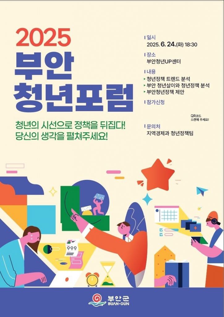 전북 부안군이 오는 24일 부안청년UP센터에서 '2025 부안 청년포럼'이 열린다.