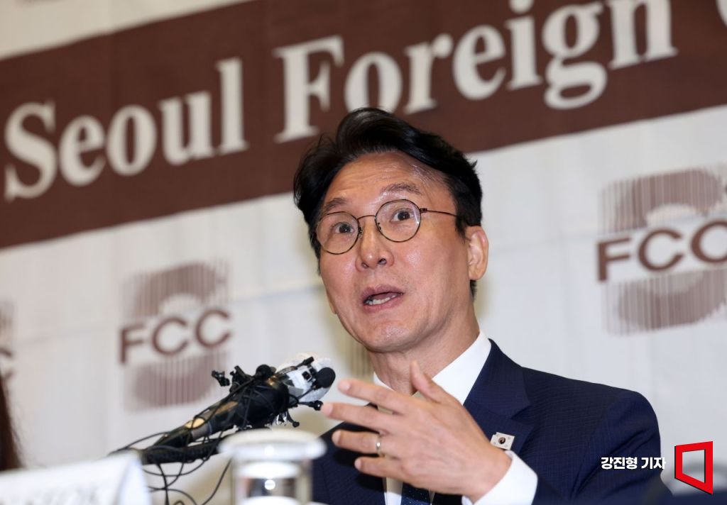 김민석 국무총리 후보자가 17일 오후 서울 중구 프레스센터에서 열린 외신기자간담회에서 질문에 답변을 하고 있다. 강진형 기자