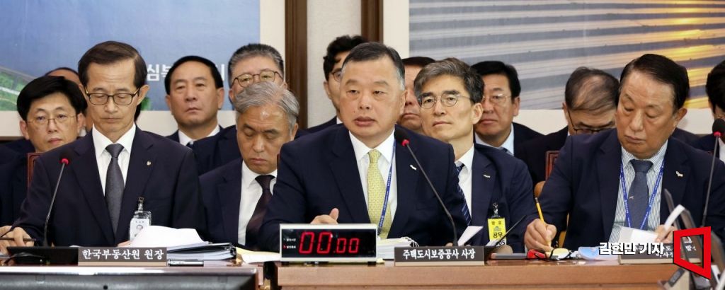 유병태 주택도시보증공사 사장이 2023년 국회 국토교통위원회에서 열린 한국부동산원, 주택도시보증공사 등의 국정감사에서 의원의 질의에 답변하고 있다. 사진=김현민 기자 kimhyun81@