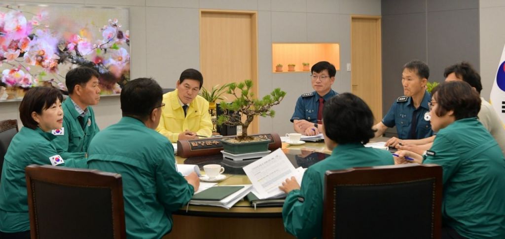 담양군과 담양경찰서는 지난 18일 군청 소쇄원실에서 정철원 군수와 양수근 서장이 참석한 가운데 장마철 자연재난 대비 협력체계를 점검하는 대책 회의를 개최했다. 담양군 제공