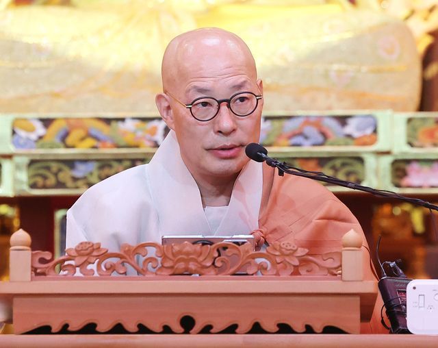 조계종 총무원장 진우스님이 22일 서울 강남구 봉은사에서 열린 '평등 세상을 위한 사회적 약자 초청 특별법회'에서 사회적 약자에 대한 각계의 관심을 촉구했다. 진우스님은 23일 조계종 총무원장 취임 1000일을 맞는다. 이번 법회에는 전세 사기 피해자, 청소노동자, 콜센터노동자 등 40명을 초대했다.