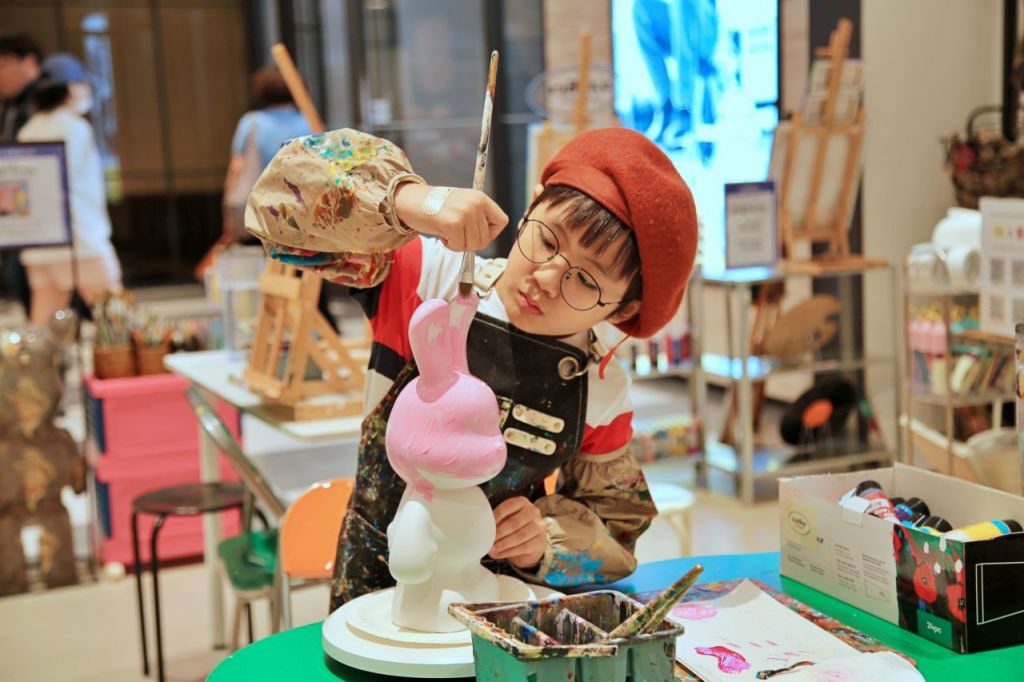 광주신세계 본관 1층 ‘에이틀리에 화실’ 팝업 매장에서 어린이 고객이 피규어 페인팅 체험에 집중하고 있다. 광주신세계 제공