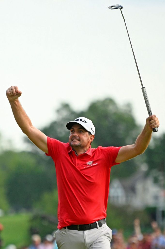키건 브래들리가 트래블러스 챔피언십 4라운드 18번 홀에서 우승 버디를 낚은 뒤 환호하고 있다. 크롬웰(미국)=AFP연합뉴스