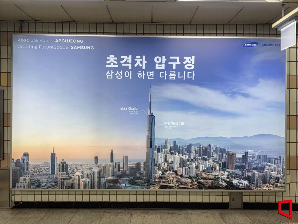 삼성물산이 압구정역에 내건 대형 광고판. 한진주 기자