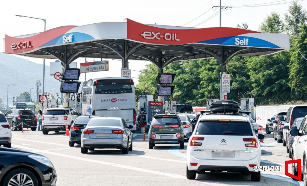 미국이 이란의 핵시설을 타격하면서 중동 정세가 악화 기로에 서며 유가 상승이 우려되고 있는 23일 서울 서초구 만남의 광장에서 운전자들이 주유를 하기 위해 기다리고 있다.