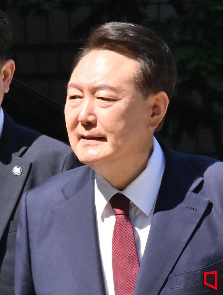 윤석열 전 대통령이 23일 서울 서초구 서울중앙지방법원에서 열린 내란 우두머리 혐의·직권남용 권리행사 방해 혐의 사건 8차 공판에 출석하고 있다. 2025.6.23 사진공동취재단