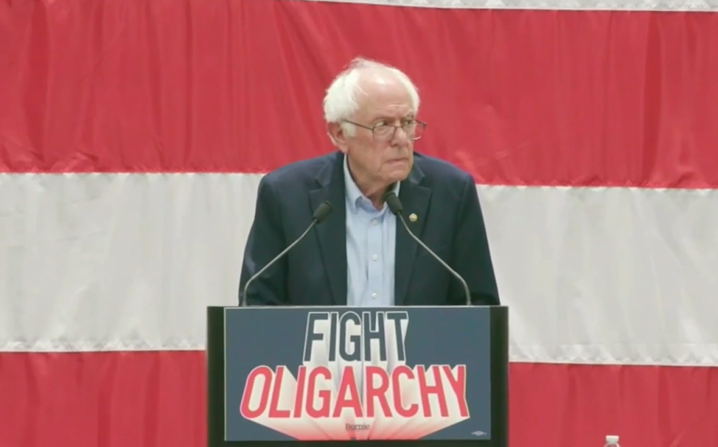 22일(현지시간) 미국 뉴스위크에 따르면 진보 성향의 버니 샌더스 상원의원(무소속)은 전날 엑스(X·옛 트위터)에 '과두정치 타도 투어'(Fighting Oligarchy Tour) 중 오클라호마 털사에서 열린 대규모 집회에서 촬영한 영상을 게재했다.