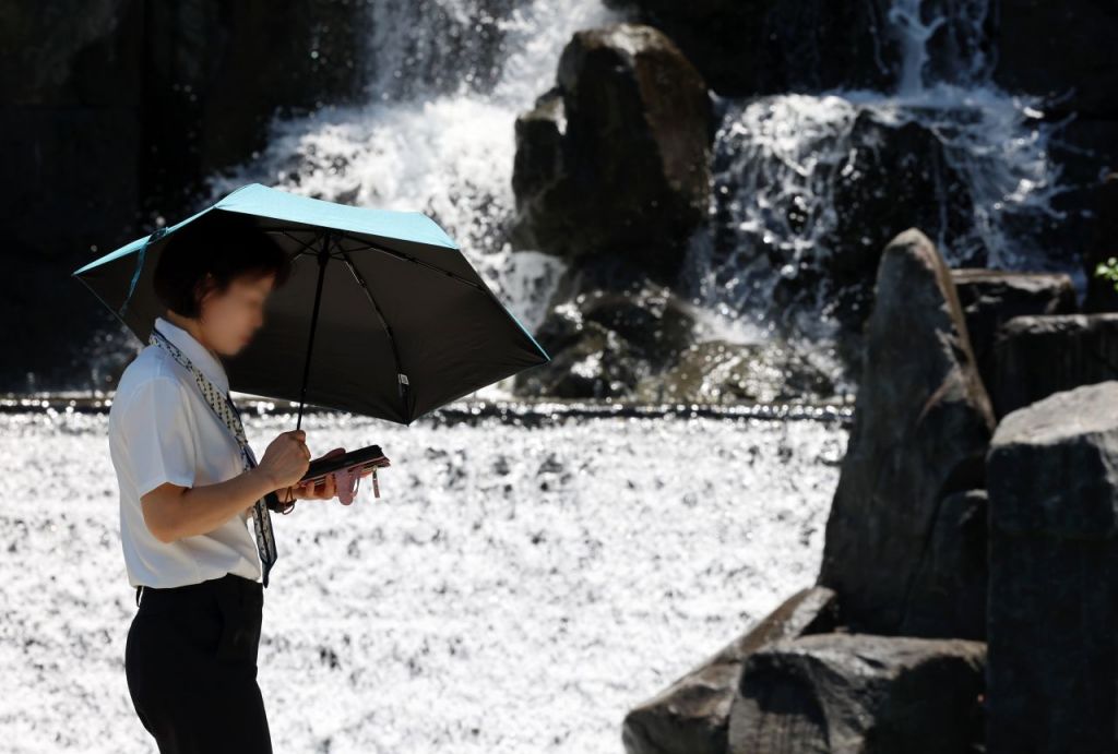장마가 소강상태를 보인 23일 광주 서구 평화공원에서 한 시민이 강렬한 햇볕에 양산을 쓰고 걷고 있다. 연합뉴스