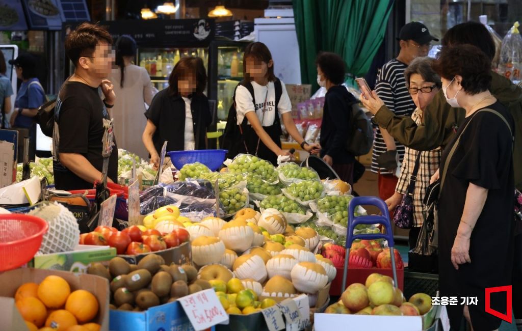 추석 연휴를 일주일 앞둔 21일 서울 마포구 망원시장을 찾은 시민들이 제수용품을 구입하고 있다. 사진=조용준 기자 jun21@